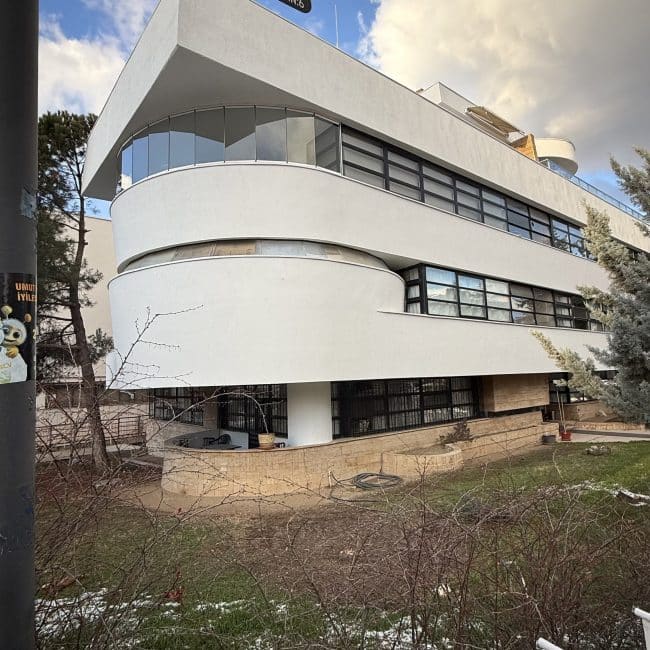 Çok etkileyici bir bina. üstelik insanların yaşadığı bir ilginç, bir modern ev. Sanırım Ankara’nın, altında garaj barındıran ilk apartmanı. Ankara’dayken görmek istiyordum, hatta belki ‘Tavizsiz bir modernist mimar: Danyal Tevfik Çiper’ kitabının yazarı Müge Cengizkan ile gidecektik. Müge ile olmasa da arada gittim. Hava eksi 5