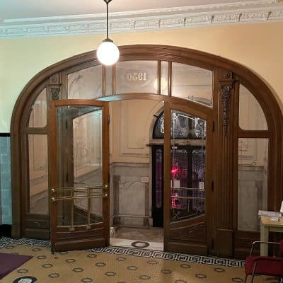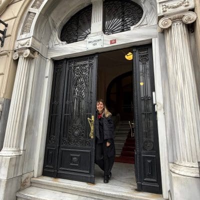 Gümüşsuyu Palas, orijinal adıyla Azaryan Apartmanı… Art Nouveau, Neo Barok karışımı yapısıyla Gümüşsuyu, İnönü Caddesi’nin en havalısı, en eski binalarından biri… İnternette hakkındaki çoğu bilgi tek bir kaynaktan kopya gibi; bu da muhtemelen bende de olan Beyoğlu Ansiklopedisi (çünkü metin aynı) ve yazan şu:  “Mimarı