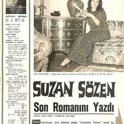 Bu arada 1958 tarihli Berin İnsel röportajına göre Suzan Sözen siyah gözlü. Eski dergi-gazeteleri okuyorum, kadın roman yazarı ama kendisiyle röportaja giden herkes ilk önce iki paragraf Suzan Hanım’ın vücudunu tarif edip övgü yağdırıyor.