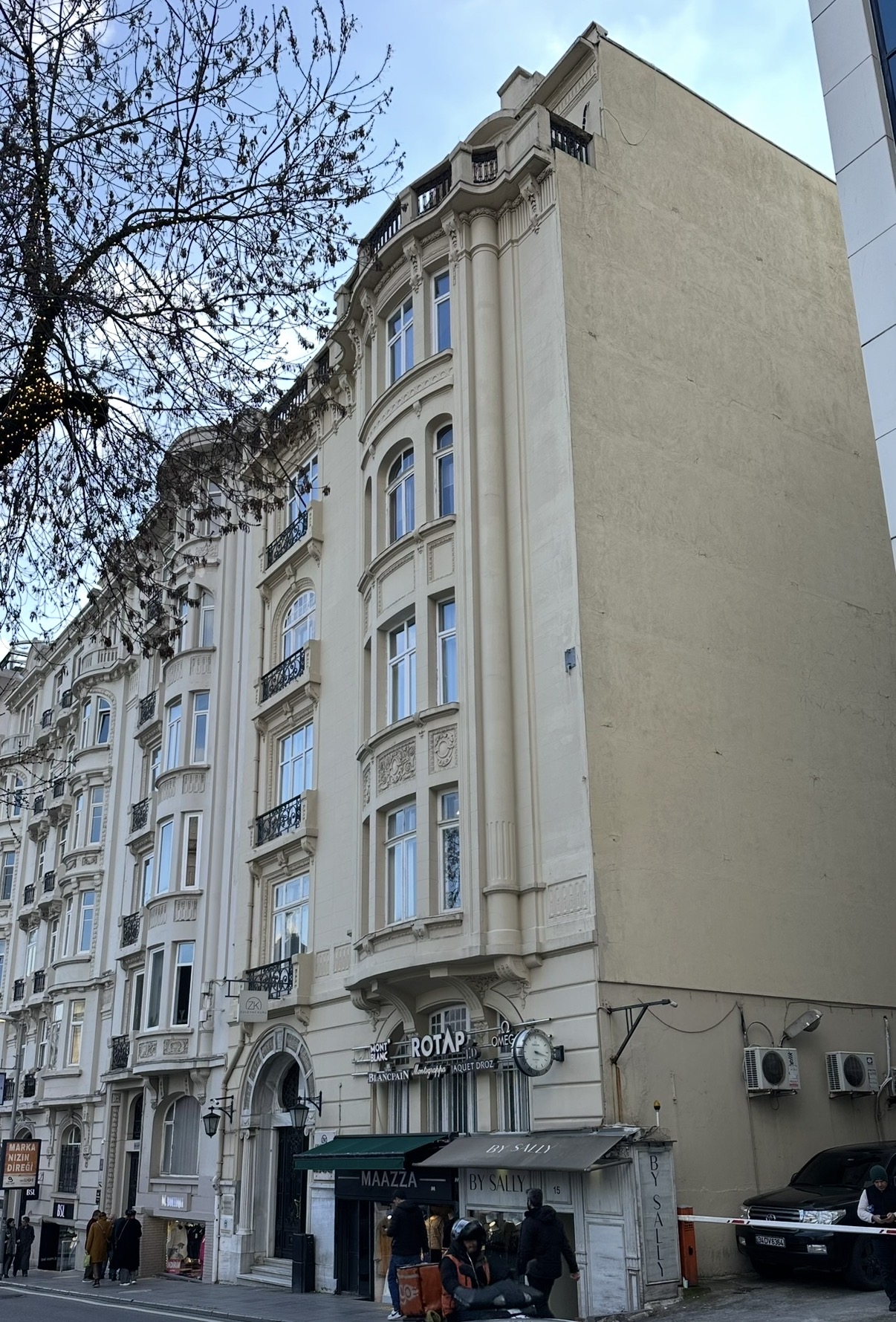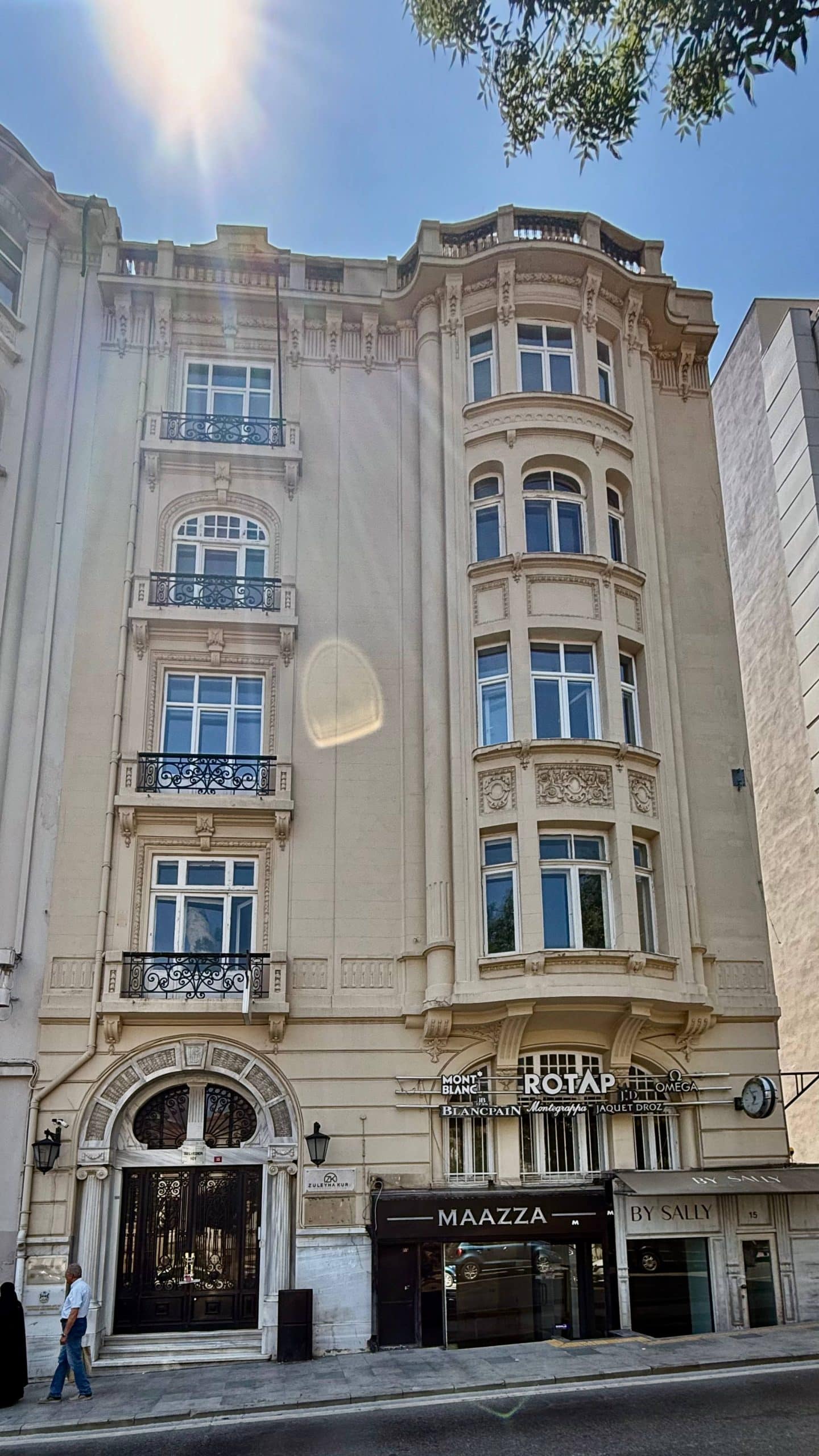Gümüşsuyu Palas, orijinal adıyla Azaryan Apartmanı… Art Nouveau, Neo Barok karışımı yapısıyla Gümüşsuyu, İnönü Caddesi’nin en havalısı, en eski binalarından biri… İnternette hakkındaki çoğu bilgi tek bir kaynaktan kopya gibi; bu da muhtemelen bende de olan Beyoğlu Ansiklopedisi (çünkü metin aynı) ve yazan şu:  “Mimarı