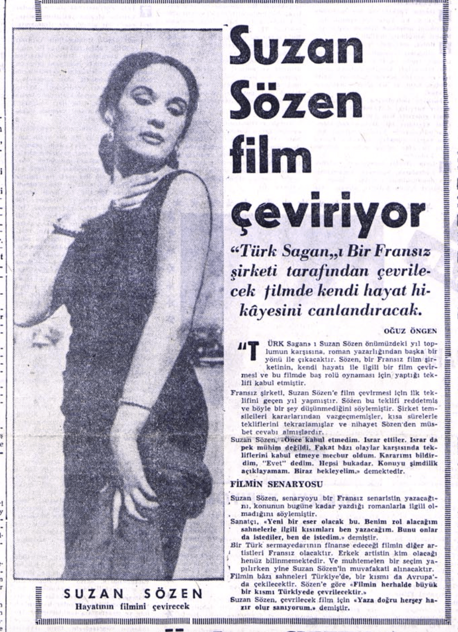 Bu arada 1958 tarihli Berin İnsel röportajına göre Suzan Sözen siyah gözlü. Eski dergi-gazeteleri okuyorum, kadın roman yazarı ama kendisiyle röportaja giden herkes ilk önce iki paragraf Suzan Hanım’ın vücudunu tarif edip övgü yağdırıyor.