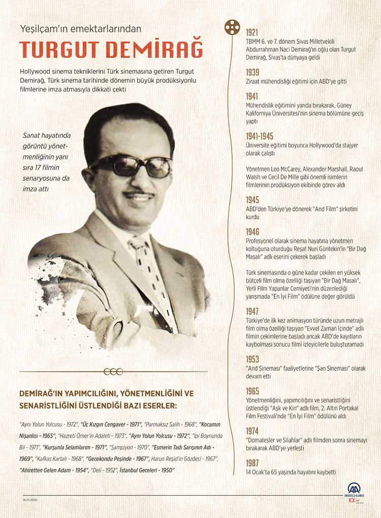 Melike Hanım’ın babası Turgut Demirağ zamanının çok ünlü yönetmen, yapımcı ve senaristlerinden biri. ABD’de sinema eğitimi almış, Türkiye’ye dönüp -adı babasının başharflerinden oluşan- And Film’ı kurmuş. “Yeşilçam’a Hollywood sinema tekniklerini getiren kişi” olarak biliniyormuş.