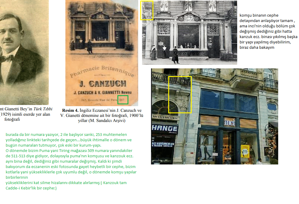 Özetle… Yani dün bir ayakkabı, bugün bir iç giyim markasının mağazası olan ve eskisiyle alakası olmayan alan eski Kanzuk Eczanesi; 253 olmuş, no 153. Bunu da belgelemiş olalım.