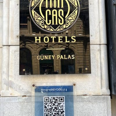 Ama eczanenin bulunduğu ve üzeri şimdi otel olan yapı o kadar büyük bir değişime uğramıştı ki, insanın inanası gelmiyordu. Şüphemi iç mimar Didem Avincan ile paylaştım, kanımı onayladığı gibi, el artırmış ve Mr. Cas Hotels’in kapısının üzerindeki -benim çektiğim fotoğraflarda tenteden belli olmasa da Google haritalardaki fotoğrafta çok belli- ayrıntıya dikkat çekmişti. Oteli eski binadan yeni haline getiren her kimse, muhtemelen araştırmalarında fotoğrafı görmüş ve artık eskisiyle hiçbir bağlantı kurulamayacak yapıya, girişisindeki eski eczaneden “bir ipucu”, “bir hatıra” bırakmıştı.