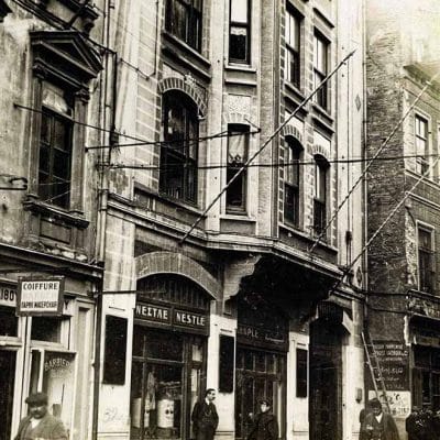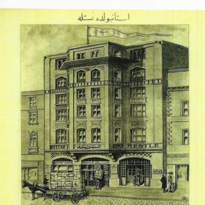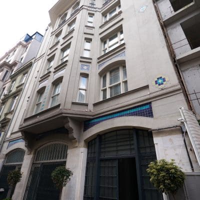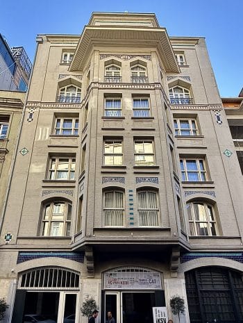 Afife Batur tarafından hazırlanan “Vedad Tek – Kimliğinin İzinde Bir Mimar” (YKY) adlı kitapta şöyle deniliyor: “1914 yılında inşa edildi. Yükseltilmiş giriş katı üzerine 5 katlı bu iş binası, Galata’nın dar sokaklarından birinde, çinilerinin rengiyle olduğu kadar, belki ondan da çok mimarisindeki net ve kararlı çizgiyle hemen fark edilir.