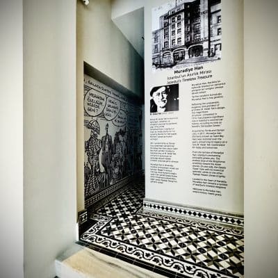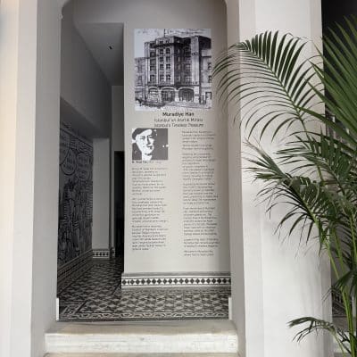 Muradiye Han, Birinci Ulusal Mimarlık Akımı’nın öncülerinden M. Vedad Tek tarafından bir ticarethane olarak tasarlanmış. 1914’te tamamlandığında “Sabit Bey Han” adı verilen bina, Karaköy ticaret yaşamında önemli bir rol oynamış. Birinci Dünya Savaşı’nın ardından İstanbul’un işgali sırasında Fransız askeri güçleri tarafından kullanılmış. 2021’de mimar Han Tümertekin ve ofisi tarafından restorasyondan geçirilen bina şimdi bir otel. Zemin katı, 18. İstanbul Bienali kapsamında ziyaretçilere açılacak bina ile ilgili aşağıdaki metinde konuk yazar ismi veremiyorum. Bina yenilendiğinde bir ajans tarafından hazırlanmış bir metin imiş. Arada eklemeler, kısaltmalar yaptım. Buyrunuz.