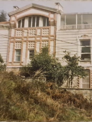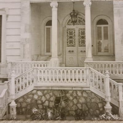 Kapı, Cimcoz Ailesi’nin yıkılmakta olan Kadıköy’deki konaklarından satın alınmıştı. Köşk’ün inşaatı 1957 yılında sonradan bulduğumuz orijinal fotoğrafına çok benzer şekilde tamamlanmış ve ailemiz köşke taşınmıştı. Babam Köşk’ün inşaatı için yatırım olarak satın alıp kiraya verdiği daireyi satmak zorunda kalmıştı. Babam için bu ev hayatının en önemli olaylarından biri oldu; ama sefasını sadece 7 sene sürebildi. Annem evi 1990 yılına kadar kullandı. O yıl satılan evi alanlar, orijinal görüntüsünü bozmadan baştan aşağı yenileyerek İstanbul’un en güzel evlerinden biri haline getirdiler.”